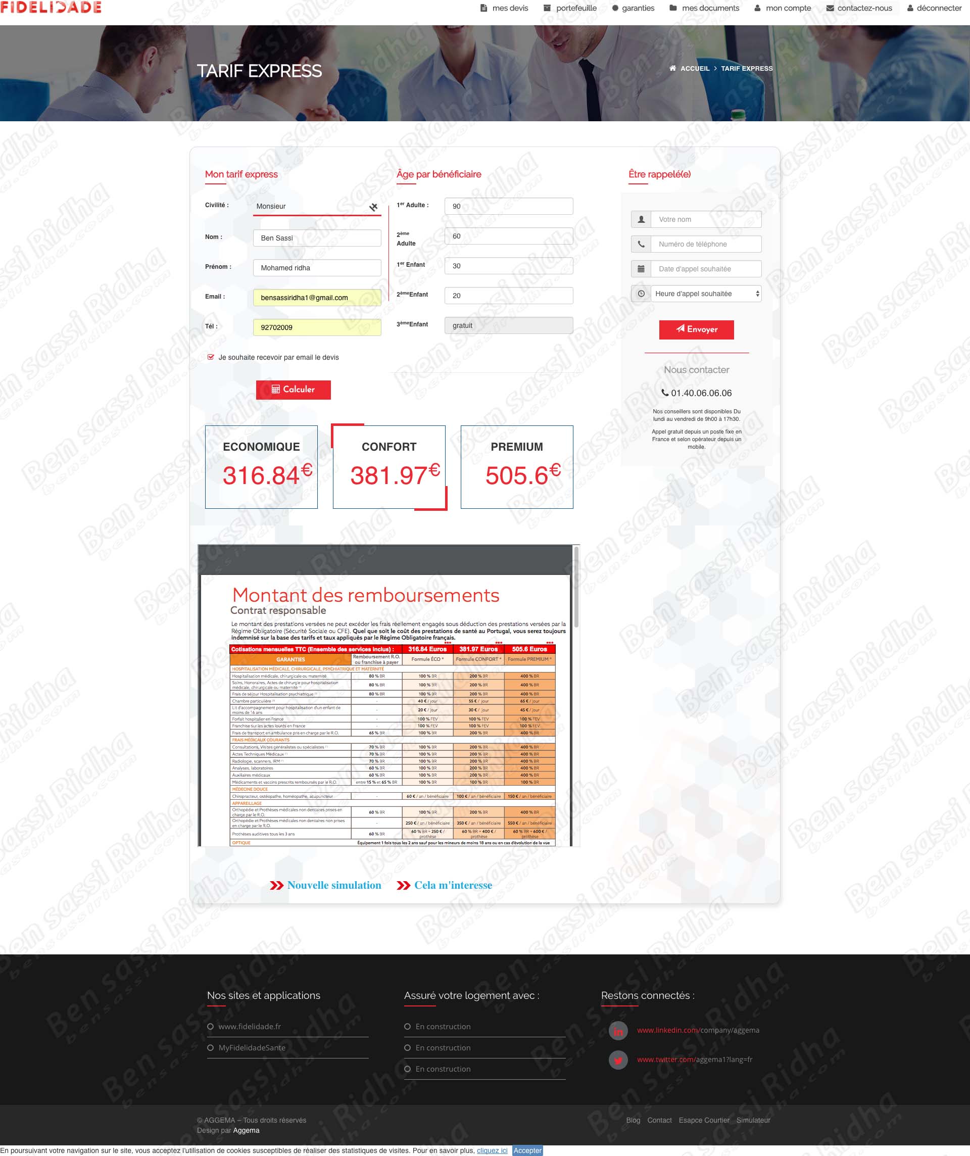 – La gestion de la troisième partie de cartes: le membre a la possibilité de gérer facilement leur carte et les cartes du bénéficiaire (conjoint, enfants)